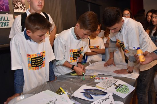 The students from “Pero Nakov” in Kumanovo shared their ideas on how to make their city more appealing. The young chemists from “Goce Delcev” in Bitola demonstrated how the quality of the water can be examined, whereas the ecologists from “Vera Ciriviri Trena” in Debreste, Dolneni combined creativity and education and made beautiful t-shirts with eco messages.